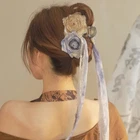 Long Ribbon Flower Hair Clip Ponytail Hair Travel Hair Claw Flower Hairclip Features: This flower hair claw cloth, easy to use, durable and hard to break. The hair clip are which can secure grip and hold your hair tightly, won not fall off easily and won not damage your hair. Making you more in the daily life, parties, ceremonies, proms, birthdays, dates, holiday and taking photo. Wonderful in birthday party, Christmas, Valentines day, Mother day, New Year party Flower shape for ladies of all ages, meet your different daily emotion, dating hairstyles or other needs Specifications: Yarn Hair Claw Size: Approx. 13cm/ 5.11in Ribbon Size: Approx. 54.5cm/ 21.45in Color: Green, Blue Package Includes: 1pc Delicate Flower Shape Ponytail Hair Claw note: 1: Please allow 1-2cm errors due to manual measurement, ensure that you do not mind before you order. 2: Due to the difference between different monitors, the picture may not reflect the actual color of the item.