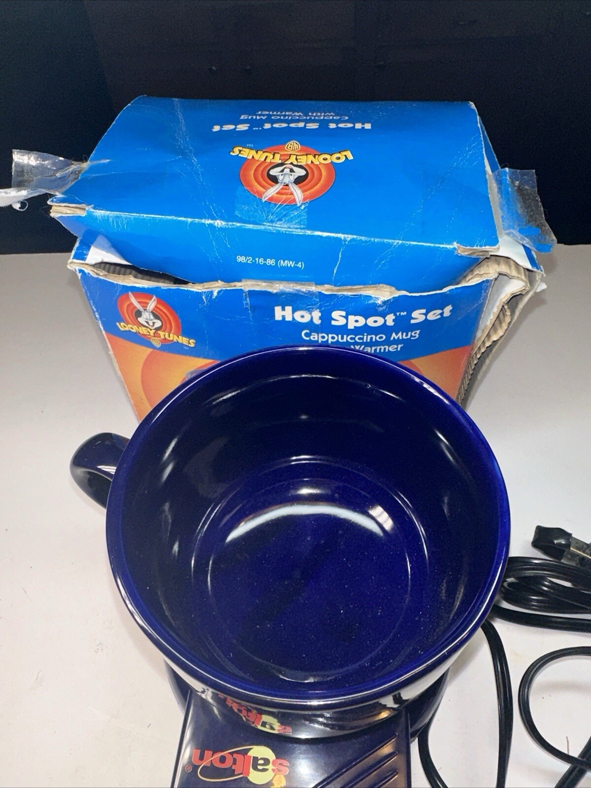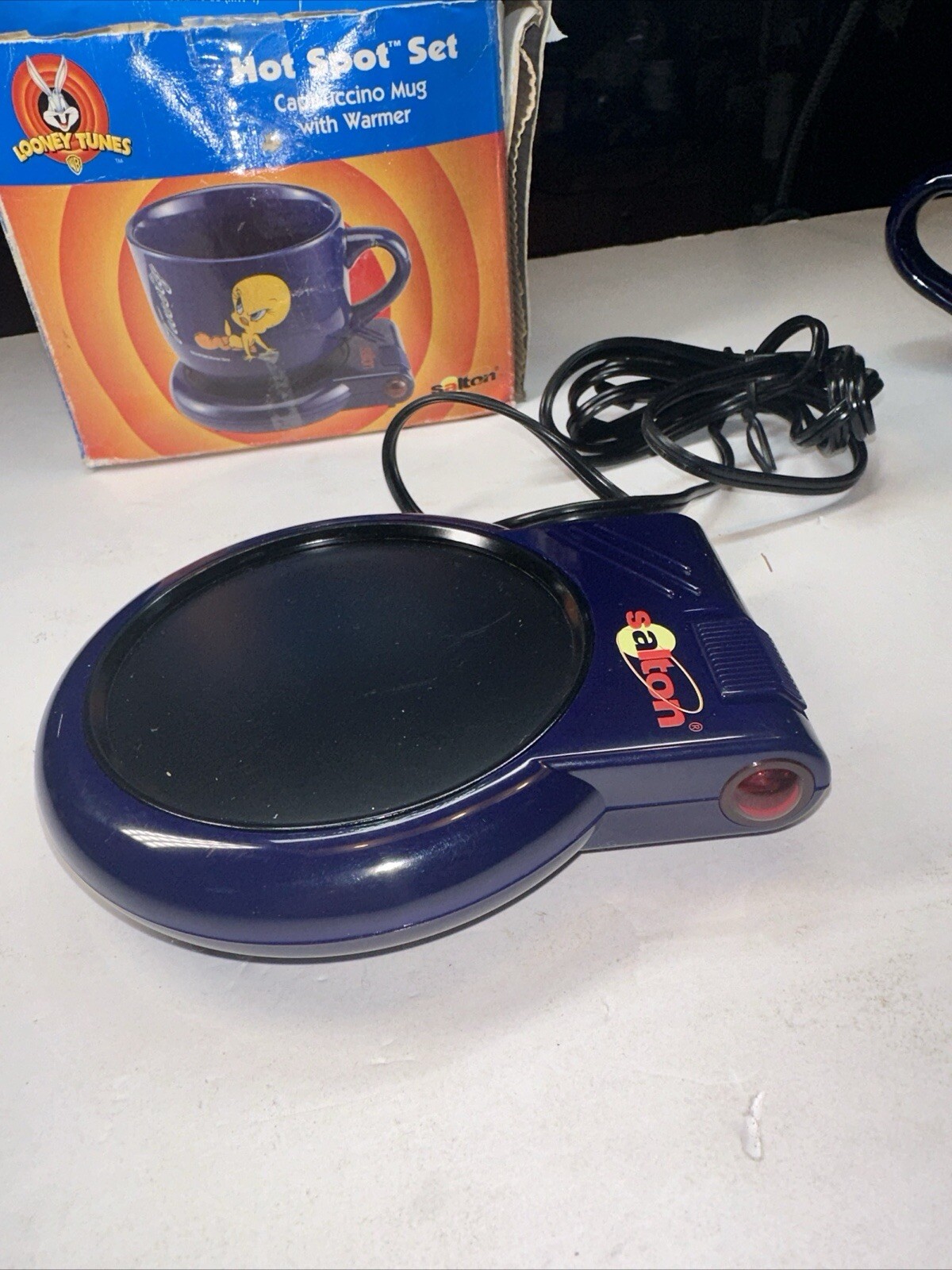 Open box This Looney Tunes Tweety Bird Cup Mug Warmer Hot Spot Set is perfect for any fan of the classic cartoon character. The ceramic mug features a spotted pattern in blue, with a hot beverage type that is perfect for any time of day. The set includes a cup, and it is made in China with high-quality materials. The mug is part of the Looney Tunes franchise, and it is a great addition to any collection of kitchen and home items. Whether you are looking for a collectible or just a unique piece to add to your dinnerware and serveware collection, this mug is sure to impress. Enjoy your favorite hot drink in style with this one-of-a-kind Looney Tunes Tweety Bird Cup Mug Warmer Hot Spot Set.