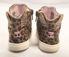 This lot includes 3 pairs of toddler shoes & a pair of boots in size 5 including popular brands as follows: 2 pair of Vans Off The Wall shoes, Self Esteem Boots, and New Balance sneakers. The Vans Off the Wall are a pair of lavender and blue animal print, with hook and loop closure. The other Vans are Off the Wall in solid red with classic red ties. The New Balance are cranberry and gray suede with coral accents, with hook and loop closure. The dessert style boots are tan and animal print zip booties with embroidered cat face on the back, this style is called Kitty Kicks. These are all in gently used condition with little visible wear. Please check all photos, as these shoes have lots of life left! This lot of athletic sneakers are perfect for little ones who want to stay stylish and comfortable.