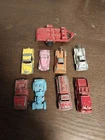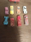 The product is a lot of 9 vintage Tootsietoy and Midgettoy mini diecast metal vehicles, including cars and trucks. These vehicles are made of diecast material and feature a multi-color design. The vehicles are from the brand Tootsietoy and are in the shape of Jeeps. Perfect for collectors of vintage diecast vehicles, this lot offers a variety of mini vehicles in different styles and colors.