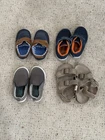 Lot of 4 used toddler shoes for boys. Photo shows size of each shoe