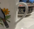 Lot of 3 Fred Robert’s bird pedestal bird mugs. Great condition! There’s a little bit of scratching at the bottom of the mugs from prior use but there’s no staining , chips, or cracks that I can see. There’s a small defect in the cardinal mug, it doesn’t feel like a chip, it’s not sharp and it feels glazed. There’s bottoms are really clean also, no scuffs. Handles are also fee of cracks and chips. These are super cute!