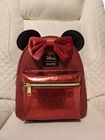 Wallet: Keep all of your essentials stashed away with a little Disney style! Inspired by your favorite fashionista, Minnie Mouse, this burgundy mini zipper wallet features a quilted design, plus a velvet bow and appliqué ear detailing at the top. Comes with 5 card slots and a clear ID display. 5'' x 4'' Polyurethane 5 card slots Clear ID display Mini Backpack: Keep all of your essentials stashed away with a little Disney style! Inspired by your favorite fashionista, Minnie Mouse, this burgundy mini backpack features a shiny polka dot debossed front zipper pocket, plus a velvet bow and appliqué ear detailing at the top. Comes with adjustable straps and interior drop pocket. 9 1/2'' x 4 1/2'' x 10 1/2'' Polyurethane Adjustable straps Interior drop pocket
