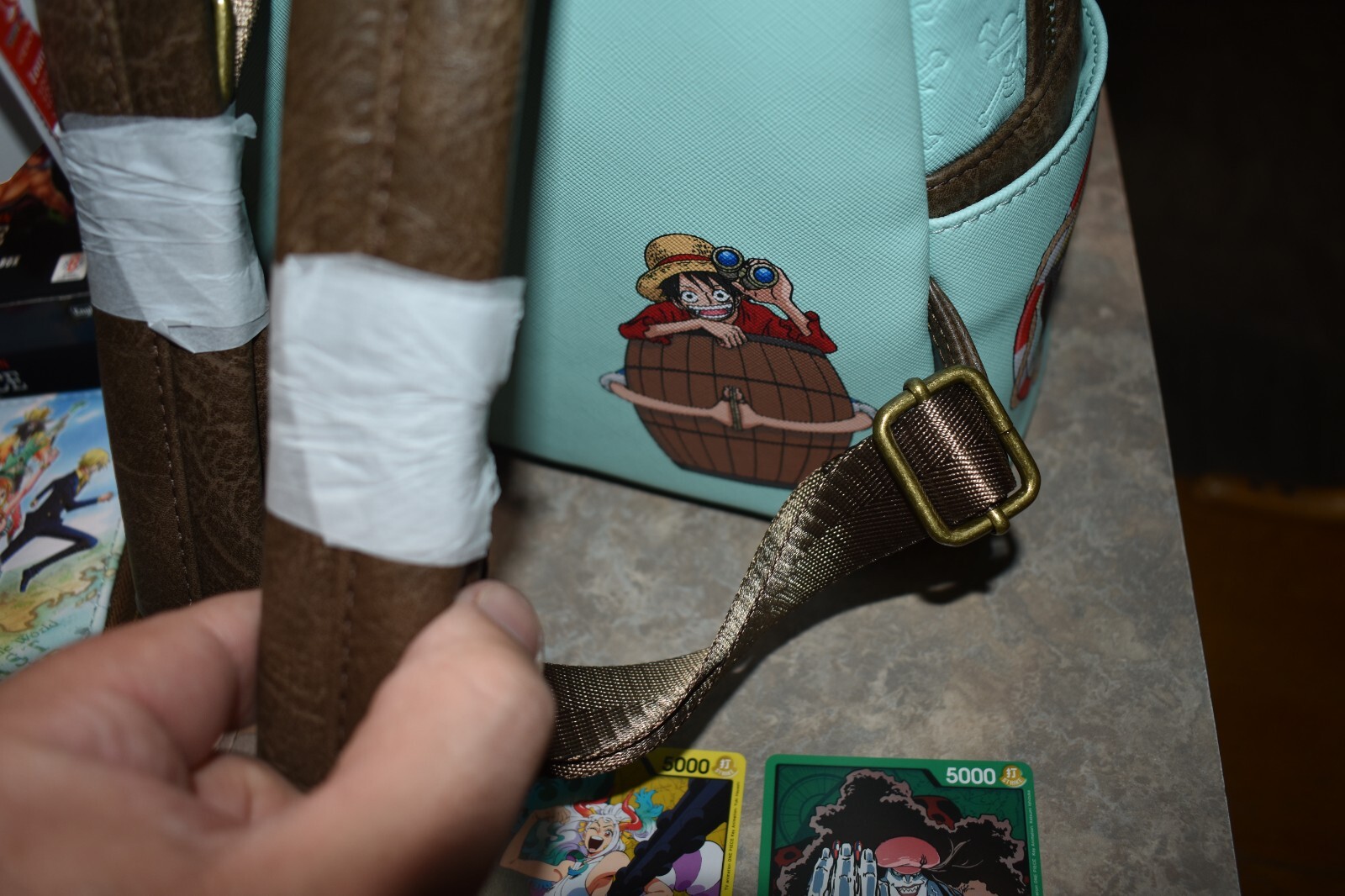 Included in this lot is a brand new with tags mini backpack and wallet set. As well as a opened Booster Box Included are 200+ Cards mostly common. You will also receive 3 leader cards, 1 Don Card, 5 Rare Cards and SR Cards. Commons will have doubles. Some Cards are from other packs not necessarily Box displayed. All mint condition. This is a great One Piece Lot! Please see pictures for more details, condition, type or message with questions before purchasing, thank you. Packed well and shipped fast.
