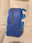 Mini Backpack: Vegan leather (polyurethane) Adjustable shoulder straps Flat front zipper pocket with zipper charm Antique gold hardware Bag measures 8.5" x 9.5" x 4.5" Wallet measures 3" x 5"