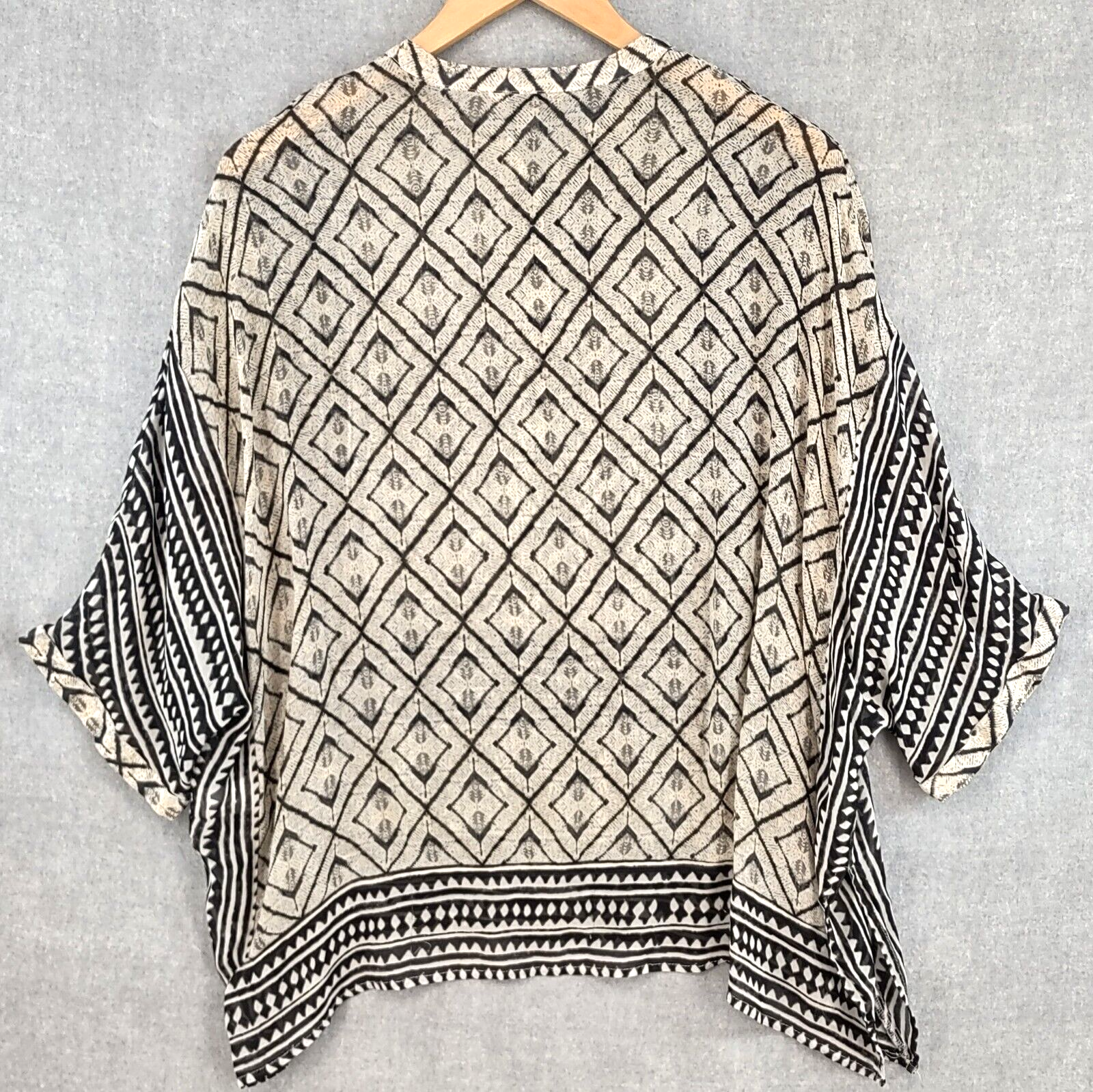 Lucky Brand Top Women Medium Aztec Tribal Print Lagenlook Dolman Viscose Sheer Boxy Blouse 25.5" LENGTH: Measured from the top of the shoulder to the hem. 28" CHEST WIDTH: Underarm to underarm, measured flat from left to right. Short Dolman Sleeve It is always best to compare the measurements above with a top that fits you comfortably. CONDITION - Good pre-owned condition with fabric discolorations. All items are cleaned per EBAY standards. Not spot treated. See the photo gallery to view this items measurements and condition. SHIPPED - USPS First Class Mail unless item weight requires priority mail. RETURNS accepted, must be returned within 30 days in original condition to receive a full refund. SHIPPING AND HANDLING We ship all packages within five business days Monday through Friday except Holidays. Consolidated shipping is available for multiple purchases. Thank you for helping our planet and buying previously owned and loved items. I am grateful for your business. Enjoy! Check out our eBay store and follow us. There are new listings daily. CUSTOM SKU: Disclaimer: While we make every effort to capture the most accurate depiction of every item when photographing, colors may vary from screen display to in person therefore we cannot guarantee "exact shade" on any item. Message us if you have questions.