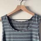 This tank top features a sleek design with alternating gray and green stripes, perfect for athletic activities. Made from lightweight fabric, it offers a comfortable fit and generous armholes for ease of movement. Ideal for workouts or casual wear, its cool color scheme adds a touch of style to any outfit. Condition: Good pre-owned condition. Logo shows wear. Comes from a smoke-free and pet-free home. **No size tag, but estimated to be about a size XL. Please see measurements below.** Approximate Measurements (Laying Flat): Length: 30 in Chest: 22.5 in Waist: 21 in For seller use: 8oz 2036