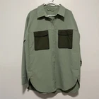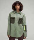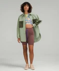 Lululemon Grid Fleece Hiking Overshirt in Laurel Green / Medium Olive Size 16 For short hikes, day hikes, or dog-around-the-block hikes, this warm overshirt gives you the coverage and breathability you need. Naturally Breathable, Mesh Fleece Fabric Naturally breathable Grid-textured Water-repellent Features Hand pockets with hidden phone sleeve Water-repellent snap chest pockets Zippered pocket on sleeve for card or keys Longer length in the back offers protection when you sit down 13732