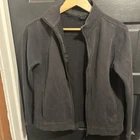 This Lululemon jacket is perfect for women who love to blend style with comfort. The black color and solid pattern make it a versatile piece that can be worn for any occasion, whether it's for a workout or a casual outing. The mid-length and full zip-up design provide a flattering fit, while the long sleeves and breathable fabric ensure comfort during any activity, such as tennis, walking, golf, yoga, hiking, or running and jogging. The jacket features collared, easy-care, and machine-washable fabric, making it a practical addition to any wardrobe. It also has pockets for added convenience. The Lululemon brand is known for its high-quality athletic wear, and this jacket is no exception. It's perfect for those who appreciate celebrity, city, college, and athleisure themes. Get this basic jacket today to elevate your style and performance.