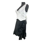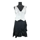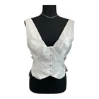 Bust - Great for any cup size. Waist - Fitted - very fitted at natural waist. Undergarments - May be worn with a strapless bra, adhesive bra, petals, or no bra. Fabric - Fabric has no stretch. Length - measures approximately 19" from shoulder to hem. (Skirt sold separatel) Description Change up the vibe with a fresh and modern piece like the Lulus Iconic Romantic Ivory Button-Front Bustier Bow Vest Top! Lightweight woven fabric shapes this ultra-chic top that has wide tank straps, a V-neckline, and seamed cups in a textured satin-y white fabric for a structured effect. Fitted bodice has a functional loop-button placket at the front and a plunging V-back accented with an adorable oversized bow. Angled hems enhance the vest-like silhouette, completing the look. Details * Shell: 97% Polyester, 3% Spandex. Contrast: 100% Polyester. Lining: 100% Polyester. * Hand Wash Cold. Do Not Bleach. Hang To Dry. * Imported. * Lined. * Style 2272436