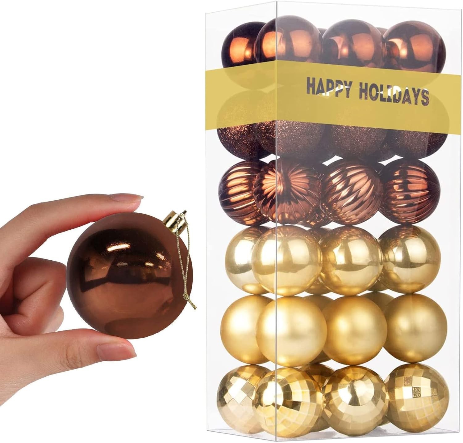 Luxurious Bronze & Gold 2.5” Shatterproof Ornaments - 36 Count for Festive Cheer ‹ › ‹ › ‹ › ‹ › ‹ › ‹ › ‹ › ‹ › ‹ › ‹ › Luxurious Bronze & Gold Shatterproof Ornaments 36 Count for Festive Cheer Features: Many varieties: 36 ornaments featuring 6 exquisite finishes. Breathtaking brown and gold Christmas balls, each measuring 2.5 inches. Shatterproof design ensures safety for both children and adults. Pre-strung for effortless decorating, perfect for both indoor and outdoor use. Long-lasting, vivid color thanks to an unfading 3-layer industry leading paint coating. Celebrate with Elegance This holiday season, transform your home into a haven of beauty and warmth with our Luxurious Bronze & Gold Shatterproof Ornaments. Each ornament is a reflection of elegance, designed to bring a touch of luxury to your festive decor. Benefits: Enhances the grandeur of your holiday celebrations. Safe and durable, perfect for homes with children. Versatile enough for various decorating styles. Effortless setup with pre-strung designs for a quick festive transformation. Fades will never dull your decor, maintaining vibrancy season after season. Bring home the spirit of the season and celebrate your most cherished moments with our stunning collection of ornaments. Order your 36-piece set of Luxurious Bronze & Gold Shatterproof Ornaments today, and let the festivities begin! Shipping Free & Fast Shipping - We offer free shipping to most of the USA with a normal delivery time of 3-7 days. However, due to the current situation, additional delivery time (up to 3 weeks) may be required for some items. Alternative Carriers - We may use alternative carriers (e.g. USPS, FedEx, UPS, etc.) to ensure your package arrives safely and on time. Due to the use of multiple carriers, we are unable to provide a tracking number automatically. Handling Time - Orders are processed and shipped within 1-2 business days of receiving cleared payment. Shipping Restrictions - Shipping to Alaska, Hawaii, Puerto Rico, Guam, and other US territories may incur shipping charges or delivery restrictions. Please contact us before ordering, or your order can be refunded/cancelled. State Restrictions - There may be restrictions based on your state of purchase. For example, certain items may not be shipped to California due to state regulations. Contact for Tracking Updates - If you require tracking updates or have any concerns about the delivery of your order, please feel free to contact us, and we will be happy to assist you. Return 30-Day Hassle-Free Returns - We want you to be completely satisfied with your purchase. If you are not, you can return the item within 30 days of receiving it for a full refund or exchange. Easy Return Process - To start a return, simply contact us and we will provide you with a prepaid return shipping label and detailed instructions. Restocking Fee - There are no restocking fees for returns. However, the buyer is responsible for return shipping costs if the return is not due to a seller's error. Refund Processing Time - Refunds will be processed within 5 business days of receiving the returned item in its condition. Payment We accept all major credit cards, PayPal, and Apple Pay for your convenience. Your payment information is secure and encrypted to ensure a safe and seamless transaction. Please complete your payment within 3 days of purchase to avoid any delays in shipping. Feedback Your feedback is extremely important to us. We strive to provide the best products and customer service possible. If you are satisfied with your purchase, please take a moment to leave us a positive review. If you have any concerns or issues with your order, please contact us before leaving negative feedback. We are committed to resolving any problems and ensuring your satisfaction. Contact Us If you have any questions or concerns, please feel free to out to our customer support team. You can contact us through the eBay messaging system. We are available Monday to Friday, 9:00 am to 5:00 pm EST, and we will do our best to respond to your inquiry within 24 hours. Buy it now and enjoy a pleasant shopping experience! Item Weight: 6 ounces Item Width: Christmas Tree Ornaments Unit Quantity: 36 Material: Plastic Features: Hanging,Shatterproof Set Includes: Christmas Balls,Hanging String,Hook Type: Tree Occasion: Christmas Color: Bronze Shape: Round Size: Medium Number of Items: 36 Item Height: 2.5 Inches