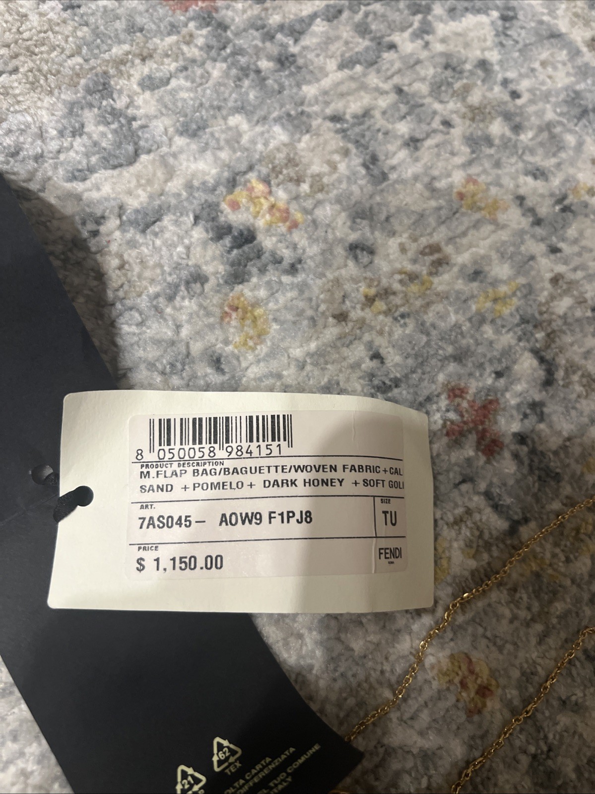 The M. Flap Bag/Baguette Woven Fabric by Fendi is a stylish and colorful card wallet designed specifically for women. This accessory features unique multicolor patterns and a sleek design perfect for keeping cards and cash organized in style. Made from high-quality materials, this wallet is a fashionable choice for any woman looking to add a touch of luxury to her everyday essentials. Comes with protective film on golden accents.