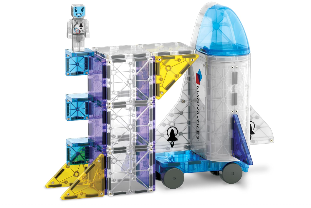 Blast off into cosmic creativity with the MAGNA-TILES Space - 32 pieces! Featuring a first-of-its-kind Space Shuttle with built-in storage, this STEAM-focused set sparks interstellar imaginations and introduces limitless ways to play. Future astronauts can explore the wonders of space while developing essential skills through hands-on building and storytelling. WHAT’S INCLUDED: This 32-piece set includes 1 Space Shuttle, 1 Space Capsule, 1 Capsule Window, 1 Space Figure, 1 Wheeled Chassis, 1 large rectangle, 6 microMAGS squares, 8 right triangles, and 12 squares. UNIQUE FEATURES: Includes a Space Shuttle with built-in storage for all Space set pieces, making it perfect for organized, out-of-this-world fun. SUPPORTS DEVELOPMENT: Encourages exploration of cause and effect, logic, hand-eye coordination, and fine motor skills while inspiring creativity through space-themed play. COMPATIBLE WITH ALL MAGNA-TILES: Fully integrates with all MAGNA-TILES sets, including Metropolis, Downhill Duo, and Classic sets, for limitless expansion opportunities. SAFE AND DURABLE: Made from food-grade, non-toxic MABS plastic with a secure lattice design and fastening rivets, ensuring long-lasting, safe play.