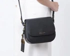 Fold over magnetic snap closure Leather Gold-tone hardware One inside zip pocket Two inside slip pockets Lined Leather/polyurethane coating Crossbody strap, 19"-27" drop 9.5"W x 8"H x 2.25"D