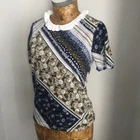MARKS AND SPENCER TOP T SHIRT Navy paisley UK 8 tie nack See images indicating sizing across pit to pit and length In GOOD used condition some light signs of use no rips stains or faults, excellent quality great style Shipped promptly within one day of sale free of charge, for premium delivery please select at check out for an additional charge