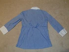 MATERNITY DESCRIPTION : BRAND : Motherhood Maternity SIZE : Small COLOR : Blue, Black & White stripes DESCRIPTION :3/4 sleeve shirt - pull on - V-neck - collar - ties in back MATERIAL : Cotton/nylon/spandex CONDITION : Excellent used condition! PAYMENT : Payment is due within 3 days of the end of the auction. SHIPPING : Shipping is via US Post Office ONLY. RETURN POLICY : I list items to the best of my ability and try to describe each item as best as possible. Most of the items I sell are purchased at thrift shops/garage sales/etc, therefore I do not know the history to each item. Unless stated new, they are pre-owned items. I cannot guarantee items I sell are from smoke/pet free homes originally. My home is smoke free, however, I do have pets. Because computer monitors and phone screens vary in their ability to display color, color of the actual item may vary slightly. Color is not an acceptable reason for return. Items may be returned for a refund of bid price only (I will not refund any postage). Refunds will be issued once I receive the item back in the same condition as it left. If you have any problems please email me before leaving feedback. Please check out my other items - I will gladly combine shipping! Email me if you have any questions.