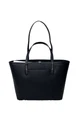 This Michael Kors Jet Set tote bag in black is the perfect accessory for any woman on the go. The bag comes with a pouch and a wristlet, making it a versatile accessory for travel, workwear, or casual use. The Michael Kors Jet Set tote bag is a designer piece that is sure to elevate any outfit.