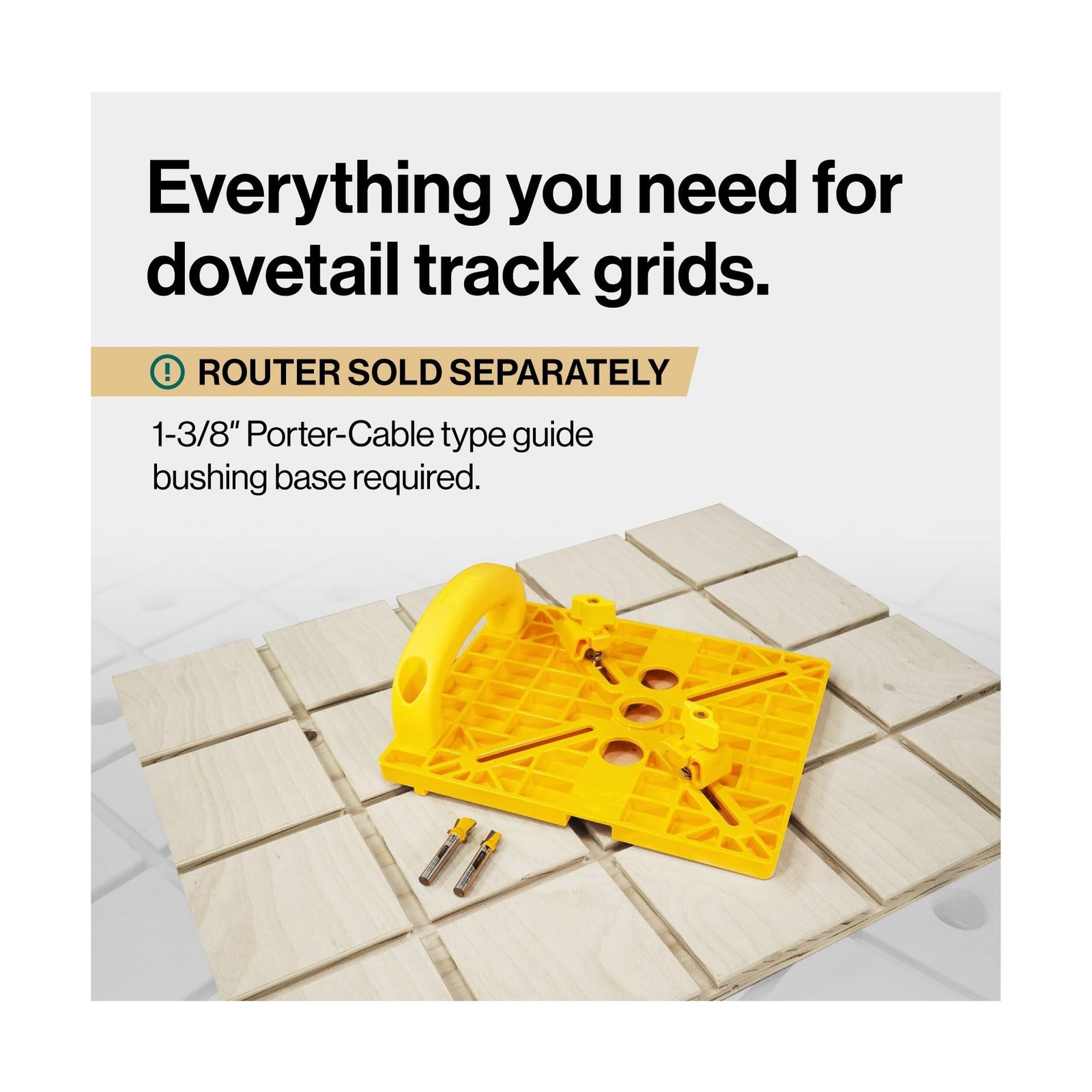 MICROJIG MatchFit Grid Router Guide Kit, Woodworking Precision Tools for Dovetail Track, Easy Setup, Self-Indexing Design, for 1/4" Shank Routing Bits Description Build the ultimate clamping setup—fast, easy, and accurate—with the MATCHFIT Grid Router Guide. Seamlessly create MATCHFIT Dovetail Grids and Dovetail Clamp Tracks. Create MATCHFIT Dovetail Clamping Grids on any size panel, eliminating the guesswork for perfect results every time. Woodworking requires precision and control, and when it comes to setting up your clamping stations, nothing beats the MATCHFIT Grid Router Guide by Microjig. Designed to work seamlessly with your router, this innovative tool makes creating MATCHFIT Dovetail Grids and Dovetail Clamp Tracks fast, easy, and accurate so you can build the ultimate clamping solution in your shop. Anywhere you can groove a dovetail track, you can clamp, secure, and confidently hold your work. Build the ultimate workbench with expansive clamping coverage and extra-wide end vices. Create 360-degree table saw sleds ready to cut at any angle. Make jigs and fixtures that are infinitely adjustable. Save time, money, and frustration with Dovetail Tracks. T-Track, who? Forget measuring, marking, or complicated setups. The MATCHFIT Grid Routing Guide features a self-indexing design that ensures perfect 4"" groove spacing every time. Simply attach the base to your router, set the included bits to the correct depth, and guide it across your panel. The grooves align themselves as you work, creating a flawless grid quickly and accurately—whether you're working on a small sled or a full 4x8 sheet. Designed and made in the USA, the MATCHFIT Grid Router Guide delivers the quality, durability, and precision you expect from a brand committed to making woodworking safer and smarter. Join our revolution started by Henry Wang in his home garage and grow our community of passionate makers and creators. We understand that purchasing new tools can feel like a risk. That's why we back the MATCHFIT Grid Router Guide with a 3-year warranty and a 100% satisfaction guarantee. If you're not thrilled with your purchase, we'll make it right. It's time to elevate your woodworking game. Say goodbye to unreliable methods and hello to the ultimate clamping setup and shop experience. With the MATCHFIT Grid Router Guide, you'll save time, reduce frustration, and achieve the precision you've always wanted when making MATCHFIT Dovetail Tracks and clamp like never before. Click 'Add to Cart' now to discover how unlimited your clamping can be! Features: CREATE CUSTOM DOVETAIL TRACK GRIDS WITH EASE: The MatchFit Grid Router Guide helps you build perfectly spaced dovetail tracks fast; Ideal for custom workbenches and jigs, this outer base makes it easy to route a complete dovetail grid on panels of any size NO MEASURING OR MARKING NEEDED: Self-indexing base ensures each groove is spaced exactly 4" apartno rulers, no layout lines; Create consistent, repeatable grooves across full 4x8 sheets or compact sleds with minimal setup and zero guesswork FAST AND EASY OPERATION: Simply set your desired depth and let the guide do the hard work for you; The smart base ensures perfectly accurate grooves every time. WORKS WITH MOST STANDARD ROUTERS: This self-indexing router guide is compatible with most routers featuring 4"7" bases and 13 HP motors; Requires a 1-3/8" Porter-Cable style guide bushing router base or adapter for secure and accurate routing performance COMPLETE KIT INCLUDED: Includes (1) Grid Router Guide, (1) Dovetail Router Bit, and (1) Relief BitJust add your router fitted with a 1-3/8 Porter-Cable style bushing adapter or base; Designed in the USA Product Details: Manufacturer: Microjig Part Number: MFRG-400-025 Item Weight: 1.37 pounds Product Dimensions: 8.75 x 10.5 x 3 inches Item model number: MFRG-400-025 Power Source: ac Item Package Quantity: 1 Included Components: (1) Bag 1A Clamp Hardware (10 pcs.) & (1) Bag 1B Handle + Hardware (7 pcs.), (1) Dovetail Bit (1/4" shank), (1) Hold Down Clamp & (1) Half Dowel Screw Adaptor, (1) Relief Bit (1/4" shank), (1) Router Guide Base Batteries Included?: No Batteries Required?: No Warranty Description: 3-Year Warranty Date First Available: January 28, 2025 Delivery We Do Not Ship Outside of the Continental US. Return Policy All items qualify for returns within 30 days of receipt. Seller is responsible for return shipping on any item that is not damaged. Feedback We take our reputation seriously, we buy and sell online, so we understand the value of trust. If you are unsatisfied with your order, please contact us and we will work with you to resolve it to your satisfaction.