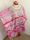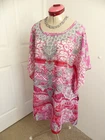 This gorgeous TOP is a Kaftan style with short sleeves and a round neckline. It is s sheer / see-through material and is a paisley print. The main colours are pink, white, silver and grey. It has multi-coloured diamante / rhinestones at the bust. The style is ‘Paradise Pink Smart Blouse Kaftan’. It is from MILLERS and is a size 14, but please check the measurements below, to ensure a good fit. The approximate measurements are: Bust: 138cm Length: 79cm It is Brand New, With Tags. Lots of other information about this fabulous top can also be found in Item Specifics. PP004 Please take a look at the tons of other gorgeous items I have available in your size! I love to combine postage and save you money! So if you are purchasing more than one item from me, please wait for me to send you a combined invoice, or press the 'Request a Total' button in your Cart before paying. I rate my items in the following way: BNWT / BNWOT: Brand New, With Tags or Brand New, Without Tags (some part of the tag will still be attached). New items that have never been worn. EXCELLENT: has been worn, but shows very few actual signs of wear. GOOD: has been worn and is showing light signs of wear. FAIR: has been worn and is showing more signs of wash/wear - or has a small fault, which will be clearly described in the listing I am only human and can make mistakes in my listings and descriptions - so if for any reason you are unhappy with your purchase, please contact me using the 'Contact Seller' button first, so we can quickly resolve the issue. This item comes from a SMOKE FREE HOME but the odd puppy hair may drift in due to the fact she is my darling shadow throughout the day.