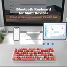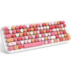 MOFII Wireless Bluetooth Keyboard for Laptop & Android, Connect up to 3 Devices Simultaneously, Portable 100-Key Typewriter Retro Round Keycaps Keyboard - Lipstick Colors Product Details Color: Lipstick Colorful Brand: MOFII UPC: 735279538540 EAN: 0735279538540 MPN: Does not apply Brand: MOFII Compatible Devices: iPad, iPhone, iMac, MacBook, Laptop, PC, Tablets, Smartphone, Windows, IOS, Mac OS, Android Connectivity Technology: Bluetooth Keyboard Description: Wireless Recommended Uses For Product: Office Special Feature: Split Keyset Design, Ergonomic, Hotkeys and Media Keys Color: Lipstick Colorful Number of Keys: 100 Keyboard backlighting color support: Single Color Style: Colorful Retro Full Size Typewriter Keyboard Product Dimensions: 13.5 x 5.1 x 1.3 inches Item Weight: 1.22 pounds Is Discontinued By Manufacturer: No Date First Available: November 25, 2020 Manufacturer: Grenf Language: English Country of Origin: China Colorful Retro Round KeycapsThe inspiration of these cute removable round keys come from vintage typewriters offering you visual enjoyment and retro feeling to type Stable Bluetooth 5.1 & MULTI-DEVICE CONNECTION - Inbuilt Bluetooth 5.1 technology. Fast channel switch among 3 devices without any interference or disconnection Auto Power-Saving This keyboard turn into Power-save mode automatically, click any key or button to wake-up within seconds. When the battery is dying,the low battery indication light in the top right corner will remind you to replace the battery Wide Compatibility Perfect choice for iPad, iPhone, iMac, MacBook, Smartphone, Windows, IOS, Mac OS, Android (Please note that there must be bluetooth connectivity function for your device ) Long Connection DistanceAdvanced Bluetooth technology provides a cable-free, clutter-free connection. Long effective operating distance: about 6m (20ft)