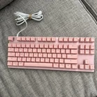 Pre-owned and lightly used gaming keyboard by MotoSpeed. Model number K82. In crystal pink. Backlit, 87 keys. USB wired connection. Tested and working. Easily customizable. Fast Shipping!
