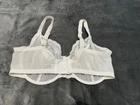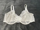 This M&S Balconette Bra is designed in a floral lace fabric with embroidered accents in a beautiful white colour. It features underwired support and has a full cup style, providing full coverage for a comfortable fit. The bra is in size 38DD, with bra straps and a hook & eye closure for easy wear. This non-padded bra offers a semi-sheer look, perfect for adding a touch of elegance to your lingerie collection.