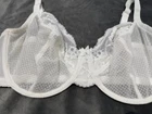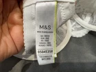 This is a Marks and Spencer Balconette Bra in size 38DD, featuring a beautiful floral embroidered lace design in white. The bra is underwired for support and has a full coverage style with bra straps and a hook & eye closure. It is a non-padded bra with semi-sheer fabric, providing a feminine and elegant look. Perfect for everyday wear, this bra offers both style and comfort for women who prefer a classic and sophisticated lingerie option.