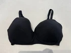 This is a Marks and Spencer black balconette bra in size 34E, designed with underwired support and padded cups for comfort. The bra features a hook & eye closure, bra straps, and a seamless design for a smooth fit. It is a wire-free style, suitable for everyday wear, with an opaque finish. Made in Vietnam, this regular-sized bra is a stylish and practical addition to any woman's lingerie collection.