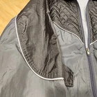 This MTA PRO Windbreaker Jacket is a stylish and versatile piece perfect for any casual occasion. Made with a knit fabric type and a solid pattern, this mid-length jacket comes in a metallic gray and white color scheme, with embroidered accents and a full zip closure. The collar style is a band, and the jacket is fitted with a relaxed style and a size S. This windbreaker jacket is perfect for any season, whether it's winter, summer, fall, or spring, and is suitable for a variety of activities such as gym and training, walking, crossfit, and hiking. The jacket is machine washable, with a nylon/polyester lining material, and is made in Thailand. With its USA and American theme, this jacket is a perfect addition to any hipster, designer, or college student's wardrobe.