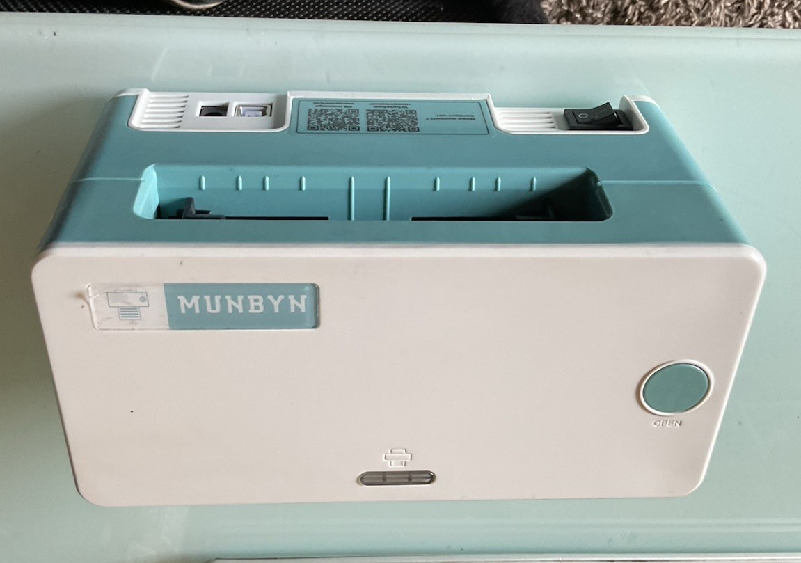 Effortlessly tackle all your printing needs with the MUNBYN USB Bluetooth Thermal Printer, designed for convenience and efficiency. This compact device supports a paper size of 4 x 6 inches, ideal for creating shipping labels, receipts, and more without the hassle of ink or toner. With a maximum resolution of 203 x 203 DPI, you can expect sharp and clear output, whether in black and white or in full-color thermal prints. The printer boasts a fast black print speed of 150 mm/s, ensuring that your labels are produced quickly and reliably. It connects seamlessly via Bluetooth or USB cable, making it a versatile addition to your tech toolkit. The MUNBYN line is renowned for its quality and durability, and this model is no exception, featuring portable design and straightforward direct thermal technology. This unit is in excellent condition, shows little if any use. No cracks no scratches no blemishes. Comes with power/usb cord.