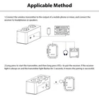 Feature: 1. High-Quality Audio Transmission: Experience lossless professional sound quality with our wireless in ear monitor system, utilizing a 2.4GHz frequency band to support 24bit/48KHz sampling rate for crystal-clear audio delivery. 2. Extended Wireless Range: Enjoy a remarkable effective transmission distance of up to 30 meters with our wireless audio transmitter and receiver, allowing you to move without the hassle of cables. 3. Compact and Versatile Design: The compact design features a unique clip that can easily convert into a mini belt pack, making it convenient to carry and ideal for various applications, whether on performance stage or in studio settings. 4. Multiple Device Connectivity: Our rechargeable transmitter receiver supports simultaneous connections with multiple receivers, enabling seamless integration across up to 4 devices, ensuring collaborative use in diverse environments. 5. User-Friendly: The wireless IEM system is equipped with LED indicators for real-time monitoring of stereo status, battery life, volume levels, and mute status, along with adjustable volume control on the receiver for precise sound management. Specification: Sampling Rate: 24bit/48KHz Wireless Frequency Band: 2.4GHz Effective Distance: 30m/98ft outdoor transmission distance Frequency Response: 20-20KHz+ 1dB/-3dB Battery Type: Built in rechargeable lithium battery Transmitter Battery Capacity: 1800mAh Receiver Battery Capacity: 200mAh Battery Voltage: 3.7V Product Material: Plastic ABS Product Color: Black Transmitter Size: 9.5 * 3.8 * 4cm/3.7 * 1.5 * 1.6inch Transmitter Weight: 75g/2.6oz Receiver Size: 3 * 2 * 4cm/1.2 * 0.8 * 1.6inch Receiver Weight: 15g/0.6oz Package List: 1 * Transmitter 2 * Receiver 1 * USB Charging Cable 1 * Instructions Manual