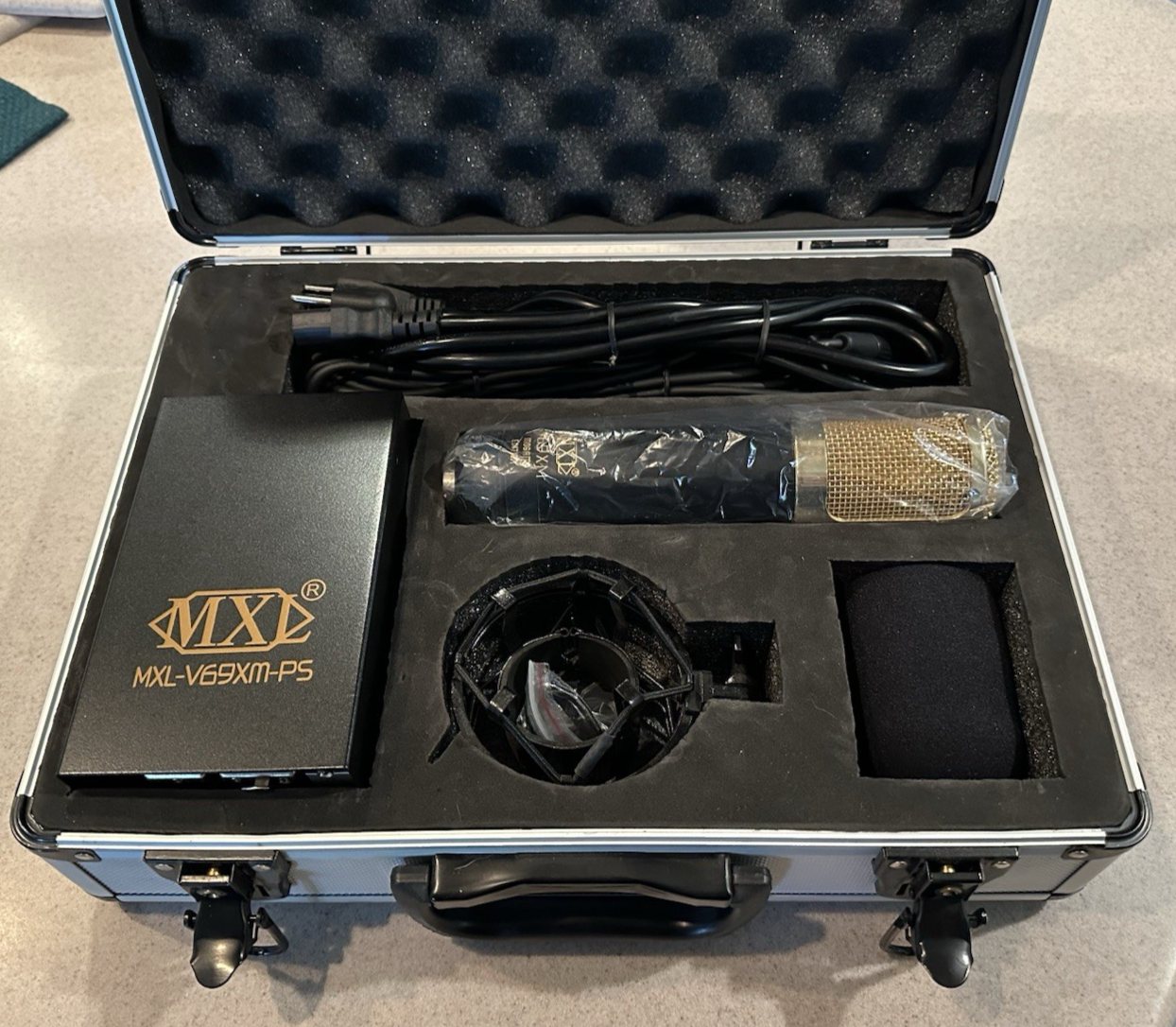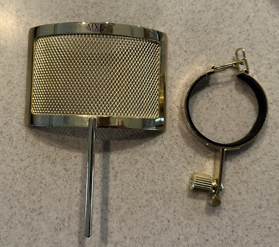 The MXL V69XM Mogami Edition Condenser Microphone with Gold Pop Filter is a professional audio equipment designed for high-quality recording. Made in Japan by the renowned brand MXL, this condenser microphone features a unique gold pop filter that helps to reduce explosive sounds and improve the overall sound quality. The MXL V69XM model is known for its exceptional performance and reliability, making it a popular choice among musicians, podcasters, and audio engineers looking to capture pristine recordings. This item was purchased for a home studio but was not used. The Gold pop filter is included with the unit but did not come with it in the case, it was purchased separately for this mic, so I have decided to include it. It is an $80.00 value.