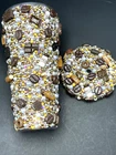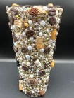 This Maars Drinkware Travel Tumbler is perfect for coffee or hot chocolate on the go. The 32 oz. tumbler is made of durable, double wall acrylic and features a twist lid for secure sipping. It stands at about 9 inches tall and is about 5 inches wide. The clear tumbler is hand decorated with a mocha and chocolate theme, making it a great addition to any kitchen or travel collection. The tumbler also boasts insulation, ensuring that your beverages stay hot or cold for longer periods of time. This item is perfect for those who want to enjoy their favorite drinks while on the go. This cup has not been used . I think it is more of a decoration but I am sure you could use if if you wanted and would make a fun gift . I will pack with care and get it to you ASAP Thanks for looking