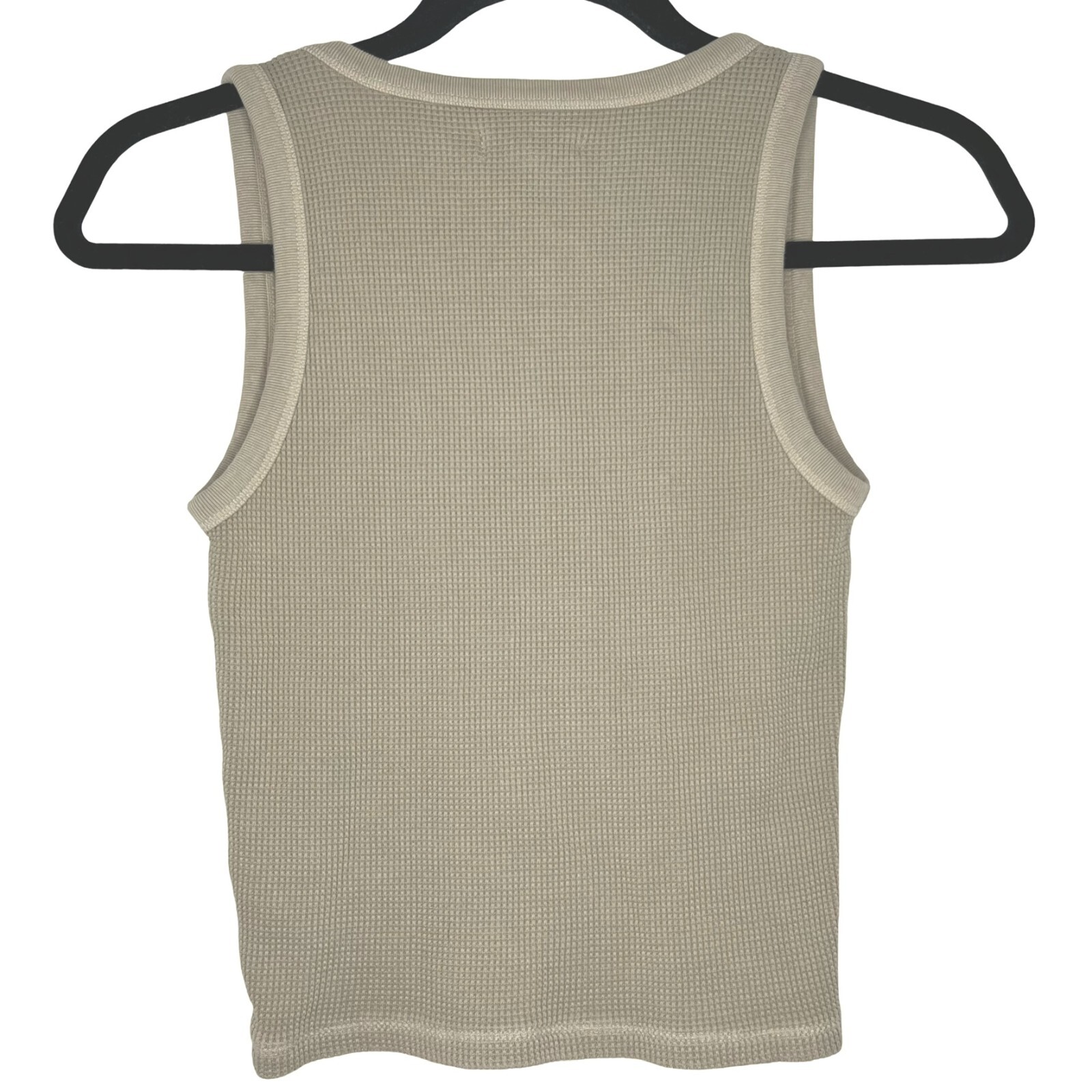 This is the Madewell Waffle Knit Scoop Neck Cropped Tank in a women's XS and wet sand beige color made of 100% cotton. Excellent Used Condition - No stains, holes, tears or other notable issues. Approximate Measurements: Length: 18" Chest: 27" Arm Opening: 19" Bottom Hem: 25" If you have any questions, or would like any additional measurements, please ask!