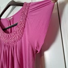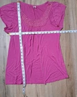 Used in good condition. Please see pictures for details and measurements laying flat. Elevate your wardrobe with this stunning Madison Women's Blouse Top. The pink fabric is adorned with pearl embroidery and studded accents, adding a touch of glamour to any outfit. The flutter sleeves and scoop neckline give it a feminine touch, making it perfect for both casual and professional settings. Crafted from a blend of spandex and rayon, this lightweight blouse is easy to care for and offers a comfortable fit. The pullover closure and regular fit make it a versatile addition to any wardrobe. Ideal for summer, fall, and spring, this blouse is perfect for travel, parties, workwear, and business settings.