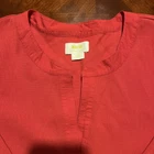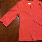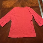 This Maeve by Anthropologie top is a must-have addition to any wardrobe. The beautiful red color and 3/4 puff sleeves make it perfect for any occasion, whether it be travel, a party/cocktail event, casual or even workwear. The top is made from a blend of polyester, spandex, and cotton knit fabric, making it lightweight, stretchy, and comfortable to wear. It features a round neckline, collarless design, and is unlined. The top is easy to care for as it is machine washable. It is available in size L and fits regular. This blouse is perfect for any season, whether it be winter, fall, or spring. Add this stylish piece to your collection today!