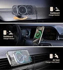 Return Policy Fast Delivery Trusted seller for MagSafe Car Mount Charger, Magnetic Wireless Charger for Car Vent/Dashboard [2024 Upgraded Magnet] 360° Rotation iPhone Car Charger Compatible with iPhone 15/14/13/12 Series&MagSafe Case Product Description ????? ???? ??? ??????? ????? ??? ??? ???????: Equipped with MagSafe technology, this wirelss car phone holder support up to 15W fast charging, providing 30% faster charging for iPhone 15/14/13/12 series than standard wireless car chargers. No worries about your phone drainning when navigating on the way. ???? ??????? ?????? ??????? ????: 2 rings of powerful magnets with 1600g of holding force, keep your phone mounted securely in place without impacting phone signal. ????????? ??? ??? ???? ???????????? ?????: Air vent clip and dashboard mount are all provided, and this reliable 3M VHB adhesive pad provides strong stick force stick to the dashboard. In addition, the triangle-lock struture vent clip for MagSafe car charger mount can be installed onto your car airvent without slip and fall. Various installation options allow your phone mounted at any place in car. ???° ????????? ???? ???? ???-???? ?????????: With the 360° flexible rotation ball joint, this magnetic mount is switchable at all viewing angles for easy navigation. Single-handedly switch your phone to a perfect angle and enjoy a more relaxed and safer drive in just 1s. The base of the mount stays firmly on your car’s air vent regardless of how much swiveling or rotating you do. ????'? ?? ??? ???: 1 x Magnetic Wireless Car Charger with 3.3ft fasting charging cable, 1 x Air Vent Clamp, 1 x Dashboard Anchor, 1× User Manual. Car charging adapter not included; ONLY compatible with iPhone 15/14/13/12 series phones. ❤????? ??????????? ??? ???????????❤:As a responsible company, car cell phone holder for iphone charger comes with 24-month warranty, and our expert team also provide with support and personalized help Shipping Returns Payment Shipping Shipping is FREE to all addresses other than APO/PO boxes in the lower 48 states. All our stock ships from US-based warehouses. Shipped via USPS or UPS (depending on location and package weight) Unless stated otherwise, all orders will ship within 24-72 hours of your payment being processed. Check our feedback to see the great reviews of FAST shipping we offer. Returns Seller does not accept returns Payment We currently accept payment via eBay managed payments only. Once payment is cleared, we will dispatch your shipment within 1-3 business days. Please refer to the "Shipping" tab for more information regarding shipping speed to your destination.