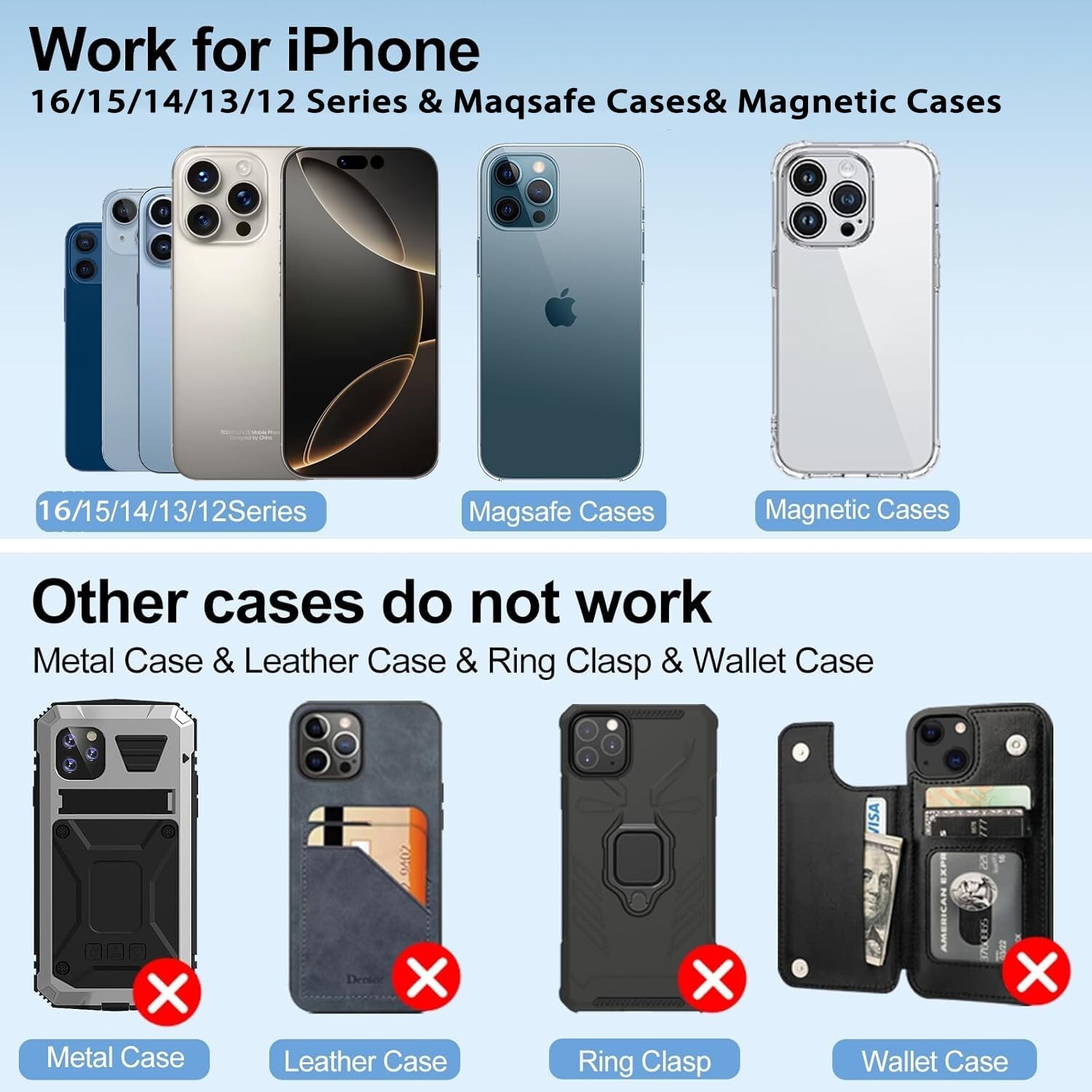 Magsafe Car Mount Wireless Car Charger [15W PRO ] Universal Vent Car Charging Fits iPhone16 Pro Max Plus Mini 16 15 14 13 12 - Buy Now with Fast Shipping! Magsafe Car Mount Wireless Car Charger [15W PRO ] Universal Vent Car Charging Fits iPhone16 Pro Max Plus Mini 16 15 14 13 12 Product Details Brand: HOSEASON Connector Type: USB Type C Compatible Devices: iPhone16, 16Plus, 16Pro, 16ProMax、iPhone 15、iPhone 15Plus、iPhone 15Pro、iPhone 15 Pro Max iPhone 14、iPhone 14 Plus、iPhone 14 Pro、iPhone 14 Pro Max iPhone 13、iPhone 13 Plus、iPhone 13 Pro、iPhone 13 Pro Max iPhone 12、iPhone 12 Plus、iPhone 12 Pro Max See more Compatible Phone Models: iPhone16, 16Plus, 16Pro, 16ProMax,iPhone15, 15Plus, 15Pro, 15ProMax,iPhone 14, iPhone 14 Plus, iPhone 14 Pro, iPhone 14 Pro Max, iPhone 13, iPhone 13 Plus, iPhone 13 Pro, iPhone 13 Pro Max iPhone 12, iPhone 12 Plus, iPhone 12 Pro, iPhone 12 Pro Max See more Included Components: 1*HOSEASON Magnetic Phone Car Mount, 1*Instruction Manual Special Feature: For iPhone, Horizontal & Vertical Vents & Dashboard,360° adjustable and the best view angle, Powerful magnetic Holder fits Magsafe & iPhone 12 iPhone 13 iPhone 14 iPhone 15 iPhone 16 Magsafe Case, high and low temperature resistance See more Color: black Input Voltage: 3 Volts Total USB Ports: 1 Wattage: 15 watts Product Dimensions: 0.3 x 0.2 x 0.25 inches Item Weight: 3.04 ounces Item model number: DZL-01 Date First Available: April 6, 2023 Manufacturer: HOSEASON Country of Origin: China Key Features ✅ CompatibilityMaster Wireless Car Phone Charger Specially designed for iPhone16, 16Plus, 16Pro, 16ProMax, iPhone15, 15Plus, 15Pro, 15ProMax, iPhone 14 Pro Max/14 Pro/14 Plus/14, iPhone 13 Pro Max/13 Pro/13/13 mini/, iPhone 12 Pro Max/ 12 Pro/12/12 mini. NOTE: Not compatible with other devices. ✅ Super Magsafe 3 Car Mmount Built-in 14 powerful magnets, 6cm large magnetic area, can bear a maximum weight of 1.7Kgs. This wireless magnetic car charger can generate stronger suction to keep your phone stable, even when driving on bumpy roads Securely lock your Phone 14 Pro Max. ✅ Never Fall Off, Upgraded Car Charger Holder The clip of this car phone holder provides a strong grip, just put it on the air outlet blade of the car, and it can firmly grasp the air outlet blade. The soft silicone on the air vent clip can hold the air vent blade more stably and protect the blade from being scratched or deformed. The wide opening of the gripper fits most car air conditioner vents. ✅ 360 Rotation, Adjustable Viewing Angle This magsafe 3 car charger mount can be rotated 360 degrees, you can easily use the phone horizontally or vertically by rotating the angle of the phone holder, and find the best viewing angle. Just put your phone on the wireless car charger phone without any additional tedious operations. Completely free your hands and save a lot of time. ✅ Safer Driving Vision Mini size, does not take up space, put it on the air vent will not block the view at all, don't worry about being disturbed by phone calls or music switching while driving, ensuring your driving safety. Your friends can make hands-free calls or line navigation during long trips. what will you get?1*HOSEASON Magnetic Phone Car Mount , 1*Instruction Manual, 24-hour email support, 18-month guarantee. Product Description