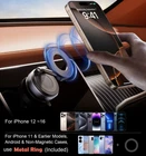 【Strengthened Vacuum Suction Cup with Manual Twist Enhancement】Featuring reinforced vacuum suction and a twist-lock mechanism, this foldable magnetic car mount delivers the ultimate physical suction power. Unlike sticky mounts, this magnetic phone holder for car offers a quick-release design for easy repositioning without leaving any residue. The more it is shaken while driving, the firmer the suction becomes. The ideal magnetic suction phone mount for your car. 【Ideal for Smooth or Textured Surfaces】Equipped with a sticky plate for textured surfaces, this car phone mount works on vinyl dashboards, windshields, glass doors, ceramic tiles, acrylic surfaces, polished metal, stainless steel, aluminum, chrome, and smooth painted walls (especially those with glossy or semi-gloss finishes). This car cell phone holder for hand is also suitable for polished marble or granite surfaces like countertops, as well as smooth, polished, or sealed wood and other plastic surfaces. 【Double Coil N52 Strong Rubidium Magnet】 This cell phone holder for car features a powerful double-layered magnetic ring with a precise 1:1 circular pattern for stable, secure attachment. Even during sudden braking, the enhanced 18N magnetic force on this mag safe car mount keeps your phone firmly in place. 【Widely Compatible with MagSafe】 This cell phone car mount works not only with iPhone 16 Pro Max/Pro/Plus/16/15 Pro Max/Pro/Plus/15/14 Pro Max/Pro/Plus/14/13 Pro Max/Pro/13/mini/12 Pro Max/Pro/12/mini/11 Pro Max/Pro/11/XS Max/XS/XR/X/8 Plus/8, but also compatible with Samsung Galaxy S22/21/20/10/9/8/7/6, Note 20/10 Plus, A71/51/50/10 models, and all other smartphone brands. Additionally, the phone car holder is compatible with MagSafe cases and magnetic phone cases from other brands. 【360° Rotation with Three-Axis Stable Support】This rotatable car phone holder mount offers full 360-degree adjustability with a stable three-axis design that prevents loosening. The joint ball on this magnetic cell phone holder for car provides just the right amount of friction, allowing you to easily adjust the angle and keep it securely in place. 【Strong Magnetic Hold, Signal-Friendly, and Case-Compatible】 The magnetic suction mount ensures uninterrupted phone GPS, signals, and charging, making it perfect for navigation and on-the-go charging. Its strong magnet securely holds larger phones and is compatible with most phone cases no thicker than 5mm (0.02 inches), although credit cards in cases must be removed. Its sleek design, sturdy build, and easy installation make it a reliable choice for both short and long trips. 【Durable Suction Cup with Secure Grip on Smooth Surfaces】 The reusable suction cup is built to last and delivers a strong, reliable grip on smooth surfaces, keeping phones secure even on bumpy roads. Not recommended for use on curved surfaces.