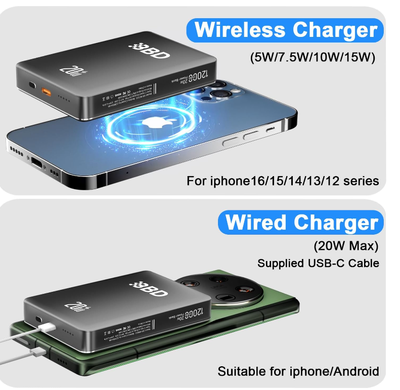 Magnetic 12000mAh 20W Fast Portable Charger for iPhone