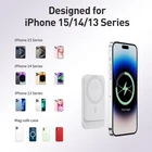 Comfortable Grip: Ergonomically designed for easy handling,the ergonomic palm area design allows your palm to make better touch with power bank. Ultra Slim: wireless portable charger has a thickness of 0.5inch, and it weighs 0.26 pounds, perfect size is ideal for you to carry, convenient for your traveling, working, etc. PD 18W Input & Output: Supports PD 18W input and output, with PD input, it can be fully charged within 2.5 hours. PD output provides faster charging speed than others. Smart LED Display: Intuitive digital LED display screen that accurately reflects the remaining power of the power bank, make the power management visible. Compatibility: This portable charger is special designed for iPhone 16/15/14/13/12 series without a case, or in a magnetic case. And you can also charging other device via a cable, comes with an USB-C TO USB-C cable .