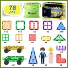Magnetic Tiles with 2 Cars Kids Gifts Boys Toys for 3 Old Boys Educational Toys for Toddlers Kids Age 3-5 4-8 Car Train Building Toys 【START YOUR ENGINES】 The Car Expansion Set 78PCS puts magnetic tiles in motion with a pair of wheeled, magnetic chassis to build upon. Get your cars, trucks, trains and other vehicles into gear by adding magnetic tiles pieces to the wheeled chassis. Anything they can dream, they can create 【PRESCHOOL CLASSROOM MUST HAVES】 Engage students in learning letters, numbers, colors, matching, pattern recognition, mathematical concepts, basic geometry, and STEAM concepts. Students also learn how to collaborate, solve problems, and strategize using our magnetic tiles and shapes. Magnetic tiles make learning fun 【STEM-APPROVED KIDS TOYS】 Our STEM toys inspire hours of instruction-free playtime while helping kids develop math, science, spatial, and tactile skills. Ignites imagination and creativity while also improving dexterity and coordination 【STEM-APPROVED KIDS TOYS】 Our STEM toys inspire hours of instruction-free playtime while helping kids develop math, science, spatial, and tactile skills. Ignites imagination and creativity while also improving dexterity and coordination 【FAMILY FUN & GREAT GIFT】 The toy gives kids a sense of achievement and camaraderie. Encourages kids, parents, or family to work together as a team to build creations and learn engineering skills. The kid toy are packaged in a beautifully designed box and come with a storage bag, a right gift for 3+ old boys & girls. Kids will fall in love with our magnetic building blocks