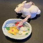 Manhattan Toy Lullaby Easter Bunny Basket Pull Musical Hanging Baby Plush Pink Excellent condition!