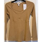 Effortlessly chic and perfect for every stage of pregnancy, the Isabel Maternity Soft Stretch Ribbed Knit Top is a must-have for your maternity wardrobe. This comfortable top features a flattering ribbed knit construction and a soft, stretchy fabric that will accommodate your growing bump. The long sleeves and feminine sweetheart neckline add a touch of style, while the pullover style makes it easy to wear. Available in a versatile tan color, this top pairs perfectly with jeans, leggings, or a skirt for a stylish and comfortable look throughout your pregnancy. maternity top, isabel maternity, ribbed knit top, tan top, long sleeve top, sweetheart neckline, pullover top, soft stretch, comfortable, flattering, machine washable, maternity wear, pregnancy clothes IRL color matches 1st photo Size M - pre-pregnancy/pregnancy size 8-10