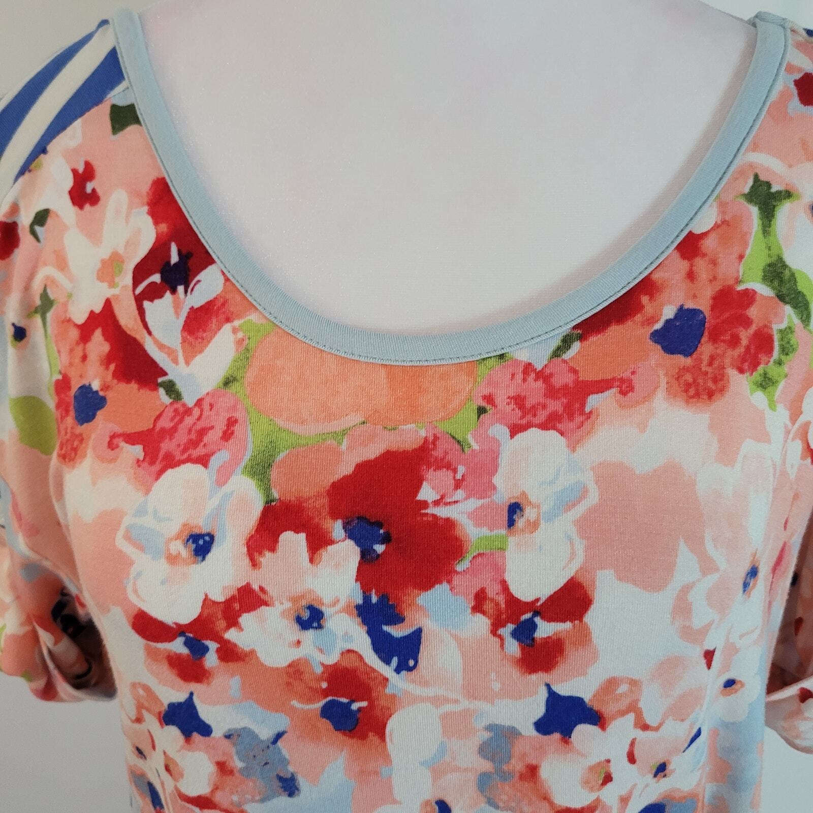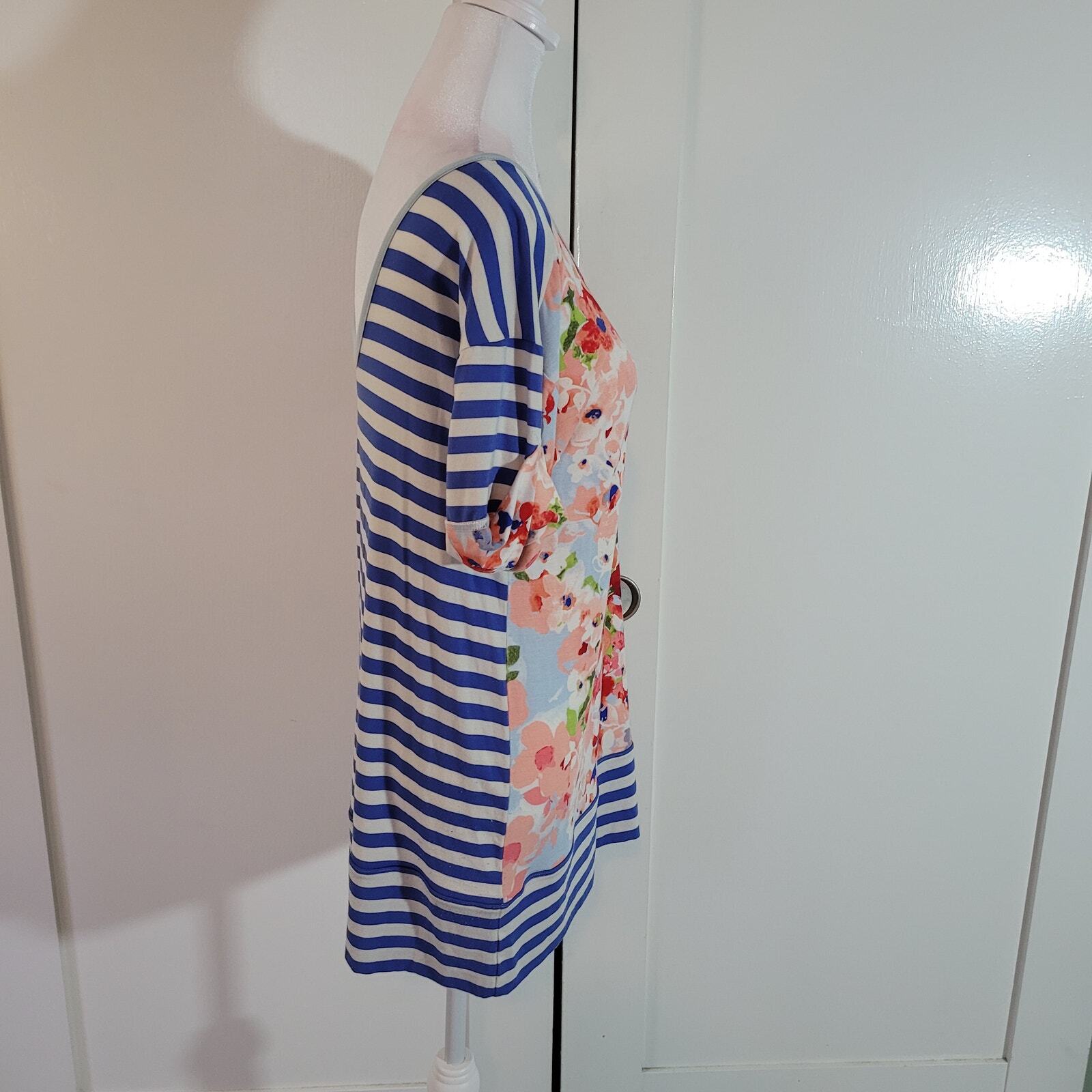 Absolutely love this tunic! The fabric is incredibly soft and light, with just the right amount of stretch for a comfy fit. The mix of floral and striped patterns is so stylish, and the cinched sleeves add a cute touch. It’s in perfect condition, looks brand new—such a great find!