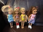 This lot of 4 Mattel Barbie 5" Club Chelsea Dolls & Friends is a must-have for any Barbie collector or enthusiast. The dolls are perfect for all occasions. The dolls' hair color, hair type, complexion, and eye color vary, making them unique and special in their own way. The dolls are original, licensed reproductions, and were manufactured between 2010-2019. They are made of hard plastic and are 5 inches in size. The lot includes Chelsea and her friends, who are multiracial and Hispanic. The dolls are in good condition and are sold as a set.