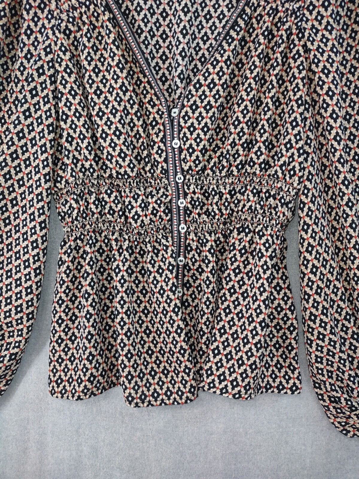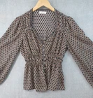 Welcome to Aspen Crossing, your destination for modern western bohemian style reflecting the rugged beauty of our American West. $138 Max Studio Rayon Peplum Smocked V-neck Boho Top Womens Medium Brown Geometric Print Balloon Sleeve Blouse Nordstrom LENGTH: Measured from the top of the shoulder to the hem. CHEST WIDTH: Underarm to underarm, measured flat from left to right. SLEEVE LENGTH: Measured from the underarm to the hem. It is always best to compare the measurements above with a top that fits you comfortably. CONDITION - Excellent pre-owned condition. All items are cleaned per EBAY standards. Not spot treated. See the photo gallery to view this items measurements and condition. SHIPPED - USPS First Class Mail unless item weight requires priority mail. RETURNS accepted, must be returned within 30 days in original condition to receive a full refund. SHIPPING AND HANDLING We ship all packages within five business days Monday through Friday except Holidays. Consolidated shipping is available for multiple purchases. Thank you for helping our planet and buying previously owned and loved items. I am grateful for your business. Enjoy! Check out our eBay store and follow us. There are new listings daily. CUSTOM SKU: 5- 2846 Disclaimer: While we make every effort to capture the most accurate depiction of every item when photographing, colors may vary from screen display to in person therefore we cannot guarantee exact shade on any item. Message us if you have questions.