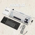 【Optimized 75% Compact Layout&Innovative Gasket Structure】The F75 redefines space efficiency with its 75% compact layout. This design integrates all the essential keys in a smaller footprint, making it perfect for streamlined desks and mobile setups without sacrificing functionality. Experience the pinnacle of comfort with the gasket structure. This advanced design ensures a flexible yet firm typing experience, reducing fatigue during prolonged use while maintaining a consistent and responsive key feel. 【Acoustic Mastery with Five-Layer Padding】The F75 boasts a five-layer sound and shock-absorbing internal design, including two layers of Poron foam, IXPE switch pad, PET sound enhancement pad and a bottom silicone pad. This sophisticated construction significantly reduces typing noise and resonance, delivering a tranquil and focused typing environment. 【Precision-Engineered 1.2mm PCB&Pre-Lubricated Mechanical Switches】At the heart of the F75 is a meticulously crafted 1.2mm single-key slotted PCB. This precision engineering ensures that each keystroke is registered with accuracy and stability, providing a satisfying and reliable typing experience. The FF75 also features factory-lubricated mechanical switches that offer a seamless and smooth actuation. This pre-lubrication process ensures a fluid, consistent keystroke right from the start. 【Three-Way Connectivity for Every Scenario&4000mAh Battery】Offering Bluetooth, 2.4GHz wireless, and wired USB connectivity, the F75 adapts to your specific needs. Whether it's for a clutter-free wireless setup or a stable wired connection, this keyboard is ready for any situation. Equipped with a large 4000mAh battery, the F75 delivers extended usage times. This generous battery capacity ensures that your keyboard is always ready for long work sessions or intense gaming marathons. 【Multimedia Control Knob&Full-Key Hot-Swap Functionality】Effortlessly fine-tune your media settings using the integrated multimedia control knob, adding a layer of convenience that ensures swift adjustments without disrupting your workflow. Dive into a realm of customization with the full-key hot-swappable sockets of the F75. This feature facilitates seamless switch replacements, accommodating your desired typing feel, whether it's for gaming, typing, or creative endeavors. 【Finely-Calibrated Stabilizers&Cherry Profile Double-shot PBT Keycaps】Discover refined keystrokes with our precision-tuned stabilizers, offering stability and a hushed typing experience. Say goodbye to key wobble as your keystrokes gain enhanced accuracy. The F75 takes durability to the next level with its Cherry-profile double-shot PBT keycaps, ensuring a perfect blend of robustness and stylish design. These keycaps stand resilient against wear, maintaining a sleek appearance that defies the test of time. 【Ultra-Responsive Low-Latency&Vibrant 16.8M RGB Illumination】Engage in the dynamic glow of the F75's RGB backlight, presenting a rich spectrum of 16.8 million colors for a personalized typing environment. Tailor lighting patterns to suit your preferences, creating a desktop atmosphere that adapts to your mood. With its ultra-responsive, low-latency connection, the F75 ensures each keystroke is not only vividly illuminated but also delivered with swift and unwavering precision, whether you're gaming or typing away.