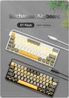 • Mechanical Operation Style : Enjoy a tactile and responsive typing experience with the mechanical operation style of this keyboard. • Hot Swap Switches : Easily swap out switches without soldering, allowing for customization and easy maintenance. • 61 Keys : With 61 keys, this keyboard provides ample space for typing and gaming needs. • Monochrome Backlight : The monochrome backlighting adds a sleek and stylish touch to your setup while also reducing eye strain. 【Portable 60% Percent Mechanical Keyboard】: This is a 61 keys compact mini mechanical keyboard with metal panel and type-c removable connecting line, it's good for all environment, business travel games office home use, without Numpad, more practical for Gamers and Typist, give more space to your desktop. 【Excellent Red Switch】: E-YOOSO mechanical keyboard uses red switches, 50 million keystrokes lifespan, 2.0mm Distance to actuation, 45g actuation force, easier to trigger, quiet click sound and fast action with minimal resistance, No paragraph sense, provide you with a quiet typing environment, red switch is the best choose using in office. Multilingual keyboard with English, Russian layout keyboard, where Portuguese is compatible with Spanish 【18 Backlight Modes】: E-YOOSO mechanical gaming keyboard has 18 backlight modes. You can switch different lighting modes by "FN2+9", you can also adjust light brightness by "FN2 + -/+". In addition, You can also enter custom lighting setup mode by "FN2+ ←". If you need't backlit then you can turn off by "FN2+0". The double-shot injection molded keycaps provide elegant and clear uniform backlight without glare. 【Hot-swappable and double Injection Keycap】: Hot-swap PCB allows you to replace 3 pins switches freely without soldering issue, you can enjoy the fun of DIY different switches on one keyboard, making your own unique keyboard. The double injection keycap provide crystal clear uniform backlight and never fade. (Come with two extra keycaps for free: ESC and space bar) 【Widely Compatibility】: E-YOOSO 60% percent mechanical keyboard is plug and play, no need any drive, it compatible for Windows 2000/XP/Vista/7/8/10, Mac OS (Note: multimedia shortcuts are not available in Mac OS system). It also compatible with PS5/PS4, Works well with Desktops, Chrome-book, PC, Laptop, Computer, and more. Note: 3, regular cleaning of the keyboard can not only ensure health, but also extend the service life of the keyboard. FAQ: