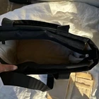ITEM DETAILS AND FLUMMERY: Medela shoulderbag carrier for the Pump In Style Advanced breast pump. Includes the case that goes around the motor and then velcroes into the bag....I'm sure it has a better, official name but heck if I know what it is. Matte black nylon, super easy keep clean by simply wiping with a moist cloth or baby wipe. CONDITION: Has a few surface spots (SEE PHOTOS), no other issues or problems. SIZING AND MEASUREMENTS: 10" x 13.5" x 5", strap drop 12". TEDIOUS BUT IMPORTANT GENERAL BLA BLA BLA: While our home is non-smoking, we do have a dog and a cat, and the chance that there may be a hair or two is more than 50%. I do my best to describe any scents, odors or potential allergens,but most of my items are pre-owned: this may pose a problem for the exquisitely sensitive or very allergic...please keep this in mind before bidding or buying. Pre-owned clothing is washed or cleaned but alas, I do not iron, press or steam...some wrinkle removal may be necessary on receipt.